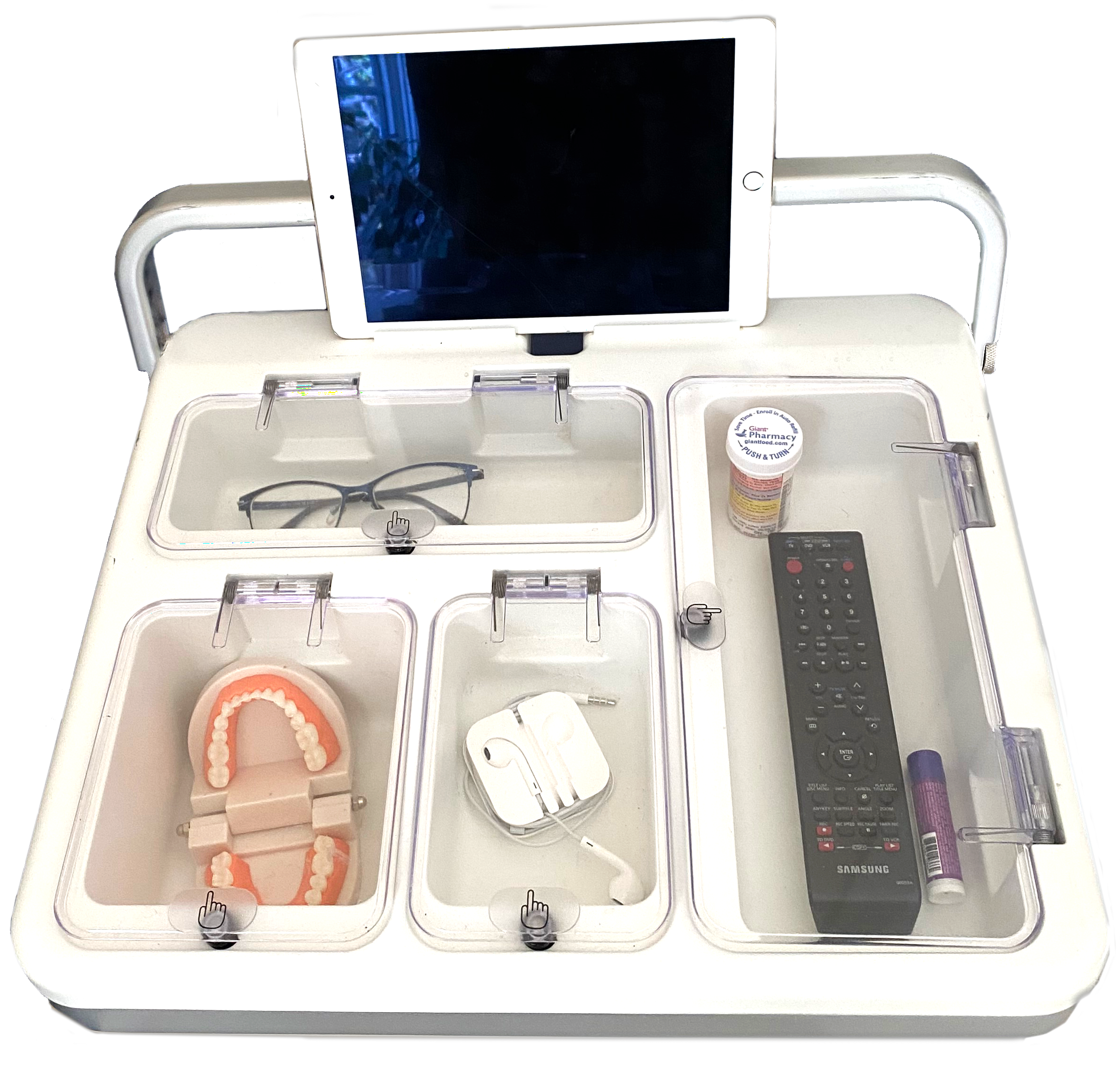 Kyst Box—your trusted companion for saving time and organizing essentials, whether at home or in a hospital. It saves nurses 15 minutes per shift and reduces unnecessary trips to patient rooms. Perfect for keeping dentures, earbuds, and glasses in place, Kyst Box enhances care and convenience across the board. This device can revolutionize patient care and drive efficiency like never before. Smart hardware, savvy software, seamless care—that’s Kyst Box!